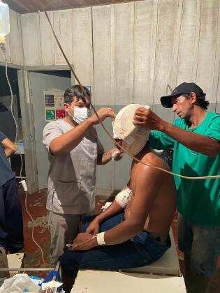 José tinha ferimentos na cabeça e estava com saturação baixa, ele foi transferido para uma Unidade de Atendimento em Poconé, mas devido aos ferimentos terem atingindo uma artéria da cabeça, precisou vir para Cuiabá, onde passa por procedimento cirúrgico.