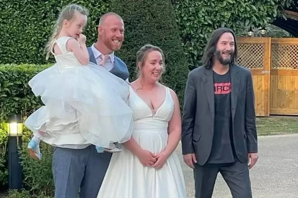 Reeves esteve no hotel Fawsley Hall e acabou comparecendo à festa de Nikki e James Roadnight. De acordo com o Daily Mail, o noivou entrou em um bar e convidou o ator para a cerimônia.