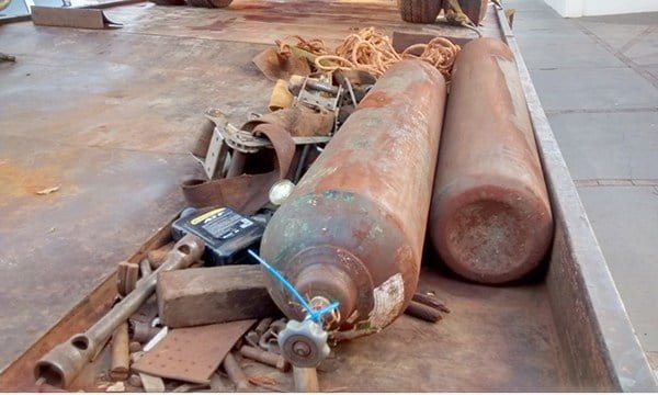 Os policiais foram até o local e encontraram, além do caminhão GM Chevrolet D6803, placas de Cândido Mota, três cilindros de gás, botijão, maçarico, luvas, óculos, garrafa térmica, regador e dois galões de combustível de 20 litros. A Polícia Científica foi acionada para periciar o local. O caminhão e os objetos foram apreendidos pela Polícia Civil para apuração da propriedade, possibilitando a responsabilização dos autores da tentativa de furto.