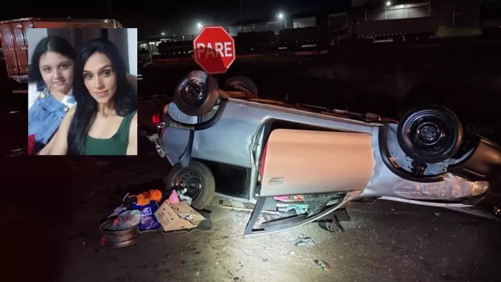 Segundo a Polícia Rodoviária, o carro em que estava a mulher, o marido e a criança foi atingido na lateral por um caminhão que tentava atravessar a pista. Com o impacto, o carro parou com as rodas viradas para cima.