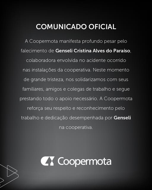 POUCO DEPOIS DAS 10 HORAS, A COOPERMOTA DIVULGOU NOTA OFICIAL LAMENTANDO A MORTE