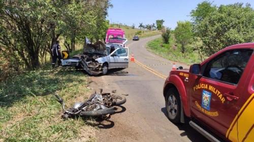 Uma colisão frontal envolvendo um Volkswagen Parati e uma motocicleta terminou em tragédia na manhã de sábado (26), na rodovia Pedro Baggio, próximo ao Aguativa, em Cornélio Procópio, no norte do Paraná.