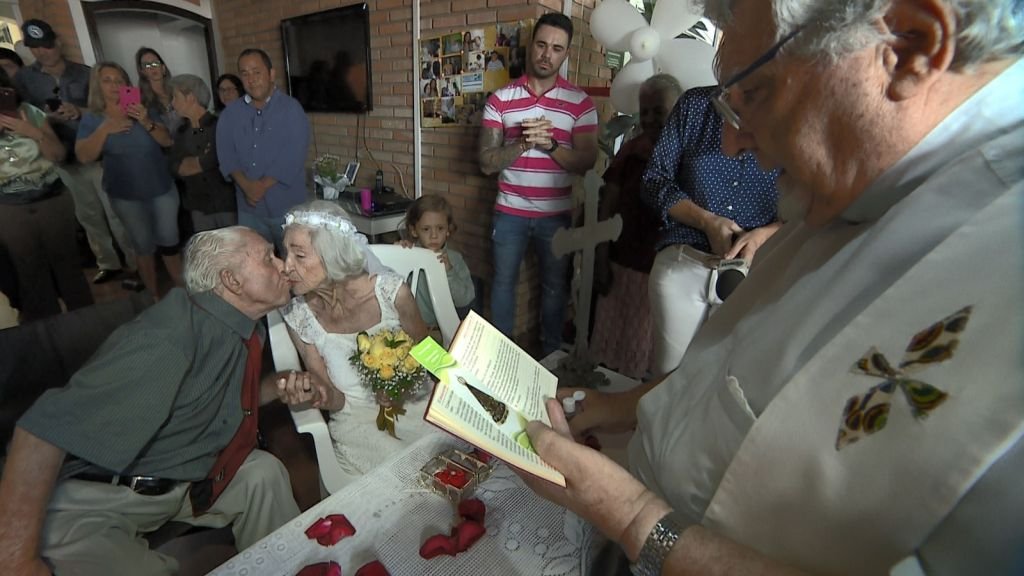 Um casal de 100 e 96 anos celebrou o casamento em uma casa de repouso de Campinas (SP), no sábado (29/02). Branca e Marcelino decidiram oficializar a união após o centenário do engenheiro aposentado, em uma celebração que contou com a presença de amigos e familiares. “Amor puro”, resumiu a filha do noivo.