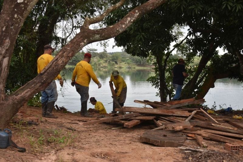 Operários estão demolindo outras construções ilegais que impedem a recuperação da APP na Água do Cascalho, que havia sido transformada em local de lazer nos últimos anos. Os trabalhos são realizados por uma equipe mobilizada pela CTG Brasil, com apoio da Polícia Ambiental e do Ministério Público. As ações devem durar até sexta-feira (10/06) e os resíduos coletados, principalmente madeira e alvenaria, estão tendo a destinação correta para evitar a contaminação da área de mata ciliar.