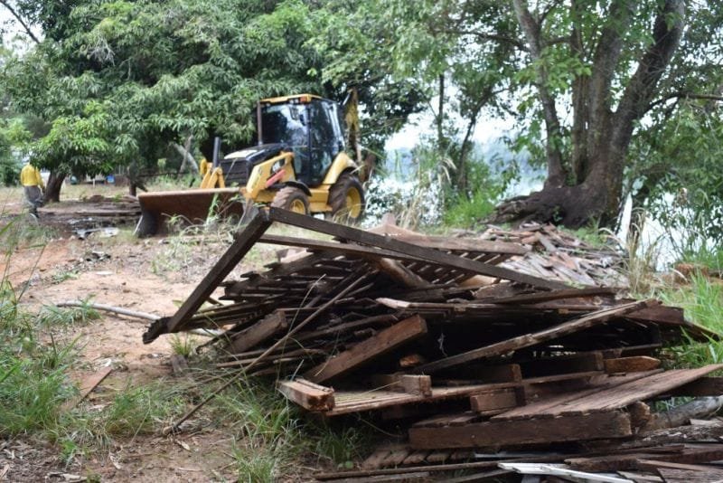 Operários estão demolindo outras construções ilegais que impedem a recuperação da APP na Água do Cascalho, que havia sido transformada em local de lazer nos últimos anos. Os trabalhos são realizados por uma equipe mobilizada pela CTG Brasil, com apoio da Polícia Ambiental e do Ministério Público. As ações devem durar até sexta-feira (10/06) e os resíduos coletados, principalmente madeira e alvenaria, estão tendo a destinação correta para evitar a contaminação da área de mata ciliar.