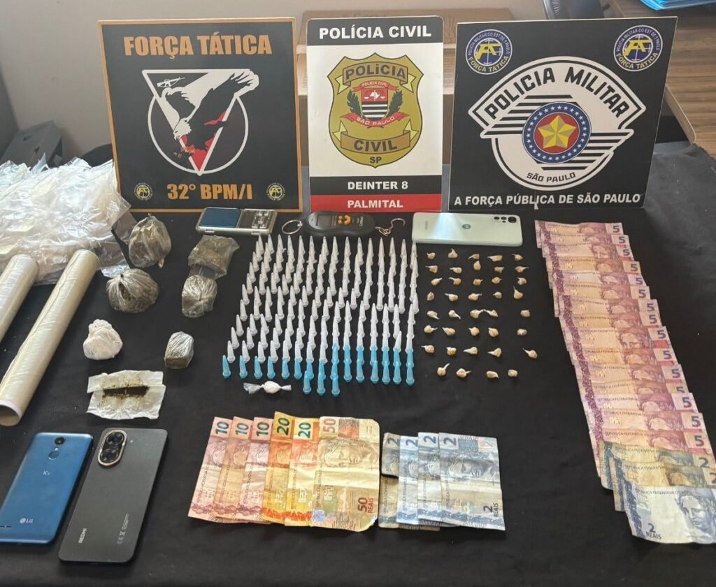 Em outro endereço, foram encontradas porções de cocaína e dinheiro em espécie, circunstância que também será investigada. A operação resultou ainda na apreensão de diversos objetos possivelmente oriundos de furtos e roubos na região, como um transformador, ferramentas de construção civil, uma televisão de 50 polegadas e grande quantidade de fios de cobre parcialmente queimados – prática comum para dificultar a identificação da origem do material.