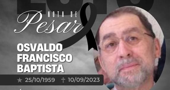 10/09/2023 – Osvaldo Francisco Baptista, aos 64 anos, casado, deixa a esposa Cristina e os filhos Fernanda, Thiago e Matheus, além de netos e bisnetos. O velório ocorre no Centro Funerário São Vicente, em Assis, a partir das 13 horas deste domingo (10/09) e o corpo será transladado a partir das 10h30 de segunda-feira (11/09) para Palmital, onde ocorre o sepultamento às 11horas no Cemitério Municipal.