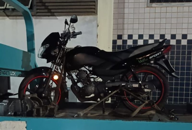 De acordo com registros da PM, uma equipe fazia patrulhamento pela cidade quando avistou a motocicleta preta na rua Maria Cândida Ferras, na região do Paquetá. Ao perceber a aproximação da viatura, o condutor estacionou o veículo e tentou se afastar rapidamente, levantando suspeita e motivando a abordagem.