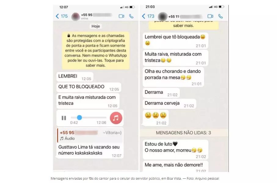 “Lembrei que tô bloqueado” é o trecho da música “Bloqueado”, hit do sertanejo Gusttavo Lima, e também a mensagem que um servidor público, de 49 anos, recebe quase todos os dias, principalmente nos fins de semana em Boa Vista. O número dele, que tem o DDD de Roraima, é citado na música e tem gerado transtornos — o homem também afirma que já recebeu conteúdo pornográfico por mensagem. Ele recorreu à Justiça pedindo que o cantor pague uma indenização de R$ 48,4 mil por danos morais.