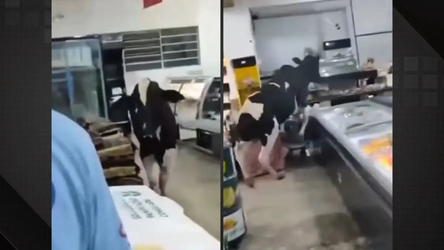 Clientes e funcionários de um supermercado no centro de Ibiá, no Alto Paranaíba, em Minas Gerais, viveram momentos de susto na tarde de quinta-feira (23/10), quando um boi invadiu o estabelecimento e percorreu os corredores do local.