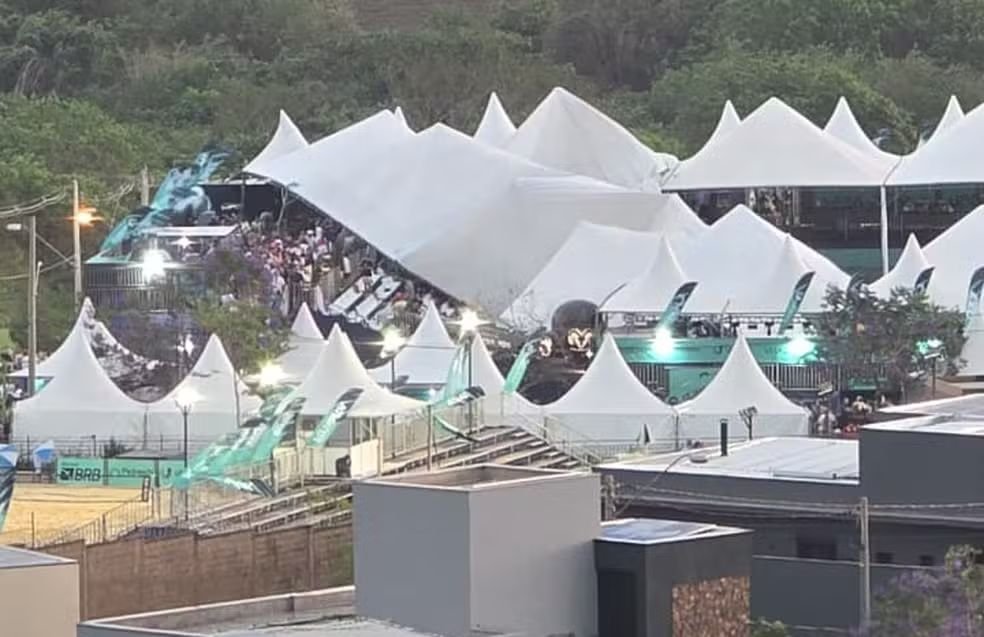 Imagens que circulam nas redes sociais mostram o público deixando o evento após o acidente e dezenas de ambulâncias mobilizadas no atendimento às vítimas. Outro vídeo mostra o momento que a cobertura tombou sobre as pessoas (assista no vídeo abaoxi).
