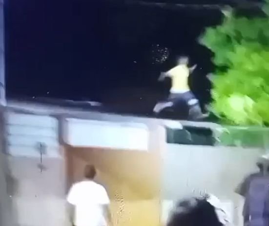 Pessoas que estavam no local, conforme mostra o vídeo reproduzido abaixo, chegaram a pedir para que ele se entregasse e desistisse da fuga. Em seguida, as imagens mostram que o homem correu sobre uma garagem e saltou em direção a um poste de energia, supostamente na tentativa de se agarrar. Contudo, ele caiu sobre uma árvore e sofreu ferimentos, permanecendo na sarjeta até a chegada da equipe do Samu.