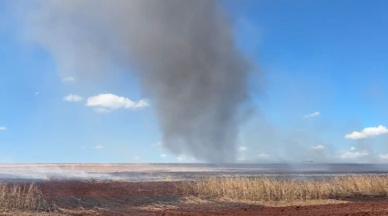 VÍDEO: Incêndio consome área de palhada durante colheita de soja na zona rural de Ibirarema
