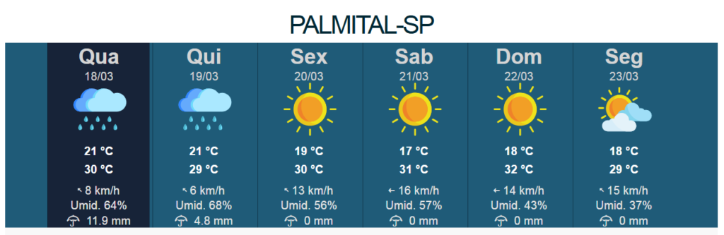 CONFIRA A PREVISÃO DO IPMET/UNESP PARA OS PRÓXIMOS DIAS EM PALMITAL